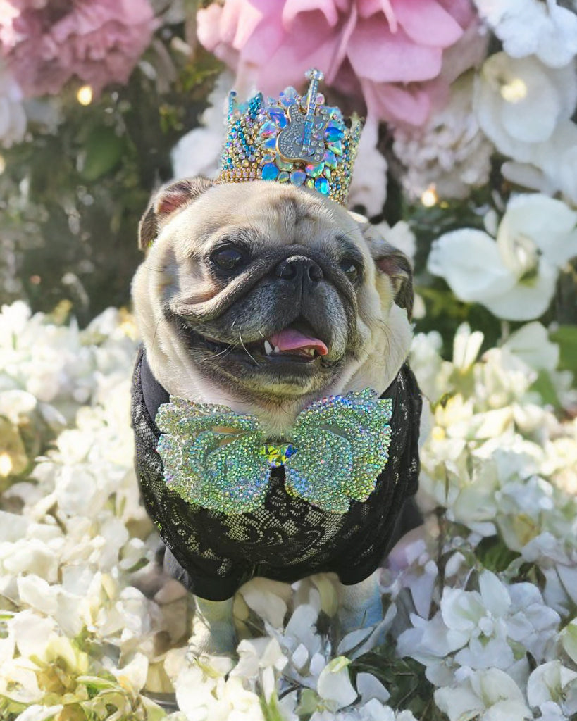 Hi, I'm Wicket the self proclaimed King of Bling. I also identify as a transbulldog since I'm a pug with a bulldog body. I'm 5 years old and I love to make others smile and laugh. My humor and audios tend to be out there.