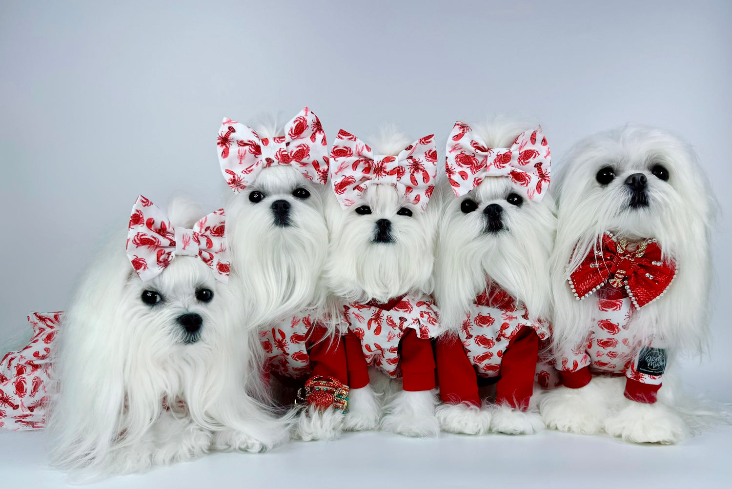 Meet the most gorgeous team of Maltese fashion models with their momager Leonora! These 5 babies are the perfect models serving all the right poses! You can save using their code FFM15 at checkout to save 15% off your blooming bow order! When you use a model code at checkout, you are not only saving, but you are also supporting that model by helping them get more fashion pieces and showing them their hard work with fashion photoshoots and posts is helping to spread the word!