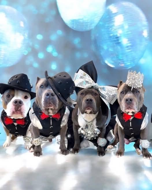 Tito, Nola, Papi and Buddha are a fashionable crew of rescued American Bullies. Buddha joined the crew as a foster and traveled 2200 miles all the way from LA. After a year he was officially adopted! Tito, Nola, and Papi are 12 year old orphaned at birth siblings. They’re true miracle babies fighting all odds and surviving such a horrific start. They hope to break some of the negative stigma of bully breeds through love, their humor, and of course fashion.